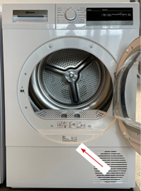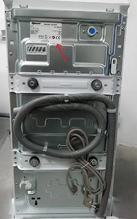 Typeskiltet på en GRAM vaskemaskine er placeret bag på produktet. Bagerst på produktet findes både model og serienummer, på fronten af produktet findes kun serienummer