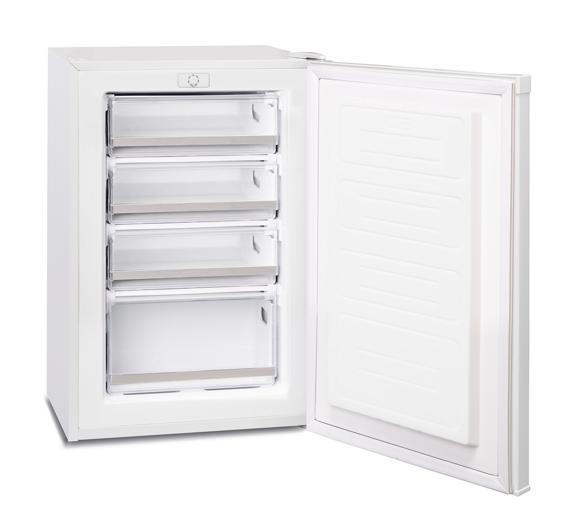 Når døren åbner i sin egen akse, kan du placere skabet helt op til andre køle- eller fryseskabe, f.eks. i en side-by-side løsning. Skabet kan også placeres tættere op ad væggen i åbningssiden. Alle skuffer og grøntsagsskuffer kan tages ud ved en 90 graders åbning af døren.