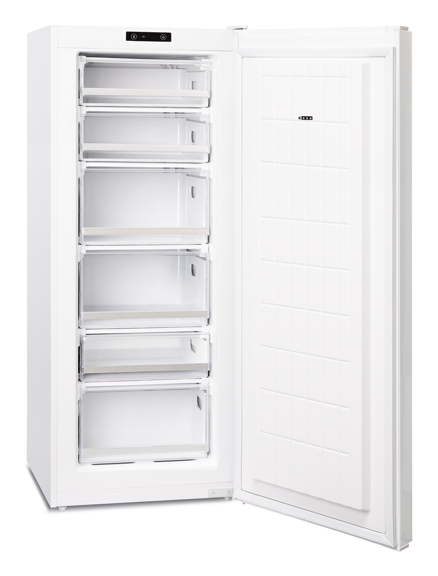 Når døren åbner i sin egen akse, kan du placere skabet helt op til andre køle- eller fryseskabe, f.eks. i en side-by-side løsning. Skabet kan også placeres tættere op ad væggen i åbningssiden. Alle skuffer og grøntsagsskuffer kan tages ud ved en 90 graders åbning af døren.