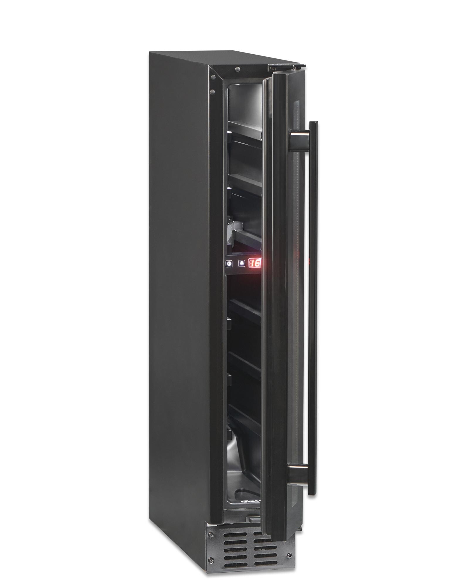 Den indvendige LED belysning gør det nemt for dig at finde den rigtige flaske vin til middagen. Lyset afgiver mindre varme end traditionelle lyskilder, så du kan vælge at have det tændt og dermed få skabet til at fremstå endnu mere elegant.